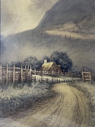 For nearly his entire life, Drayton lived and painted at Gore's Landing Rice Lake, Ontario. He painted landscapes, lake scenes and canoeing activity in oil and watercolour. This evocative sunset scene capturing the quiet solitude of being on a Canadian lake at sunset is a fine example of his work, and is believed to have been painted on Rice Lake.